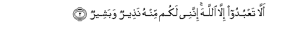 agar kamu tidak menyembah selain Allah. Sesungguhnya aku (Muhammad) adalah pemberi peringatan dan pembawa kabar gembira kepadamu daripada-Nya,