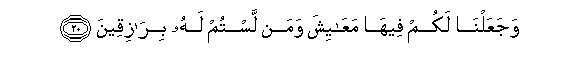Dan Kami telah menjadikan untukmu di bumi keperluan-keperluan hidup, dan (Kami menciptakan pula) makhluk-makhluk yang kamu sekali-kali bukan pemberi rezeki kepadanya.