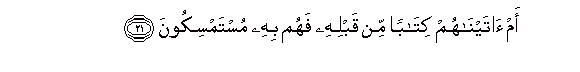 Atau adakah Kami memberikan sebuah kitab kepada mereka sebelum Al Qur'an lalu mereka berpegang dengan kitab itu?