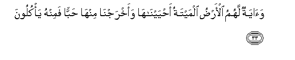 Dan suatu tanda (kekuasaan Allah yang besar) bagi mereka adalah bumi yang mati. Kami hidupkan bumi itu dan Kami keluarkan daripadanya biji-bijian, maka daripadanya mereka makan.