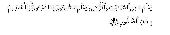 Dia mengetahui apa yang ada di langit dan di bumi, dan mengetahui apa yang kamu rahasiakan dan apa yang kamu nyatakan. Dan Allah Maha Mengetahui segala isi hati.