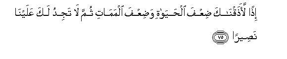 kalau terjadi demikian, benar-benarlah Kami akan rasakan kepadamu (siksaan) berlipat ganda di dunia ini dan begitu (pula siksaan) berlipat ganda sesudah mati, dan kamu tidak akan mendapat seorang penolongpun terhadap Kami.